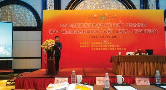 11月28日,由中国腐植酸工业协会主办、鲁西协办的“2013全国腐植酸生态文明(环境)建设论坛暨第十一届全国绿色环保肥料(农药)新技术、新产品交流会在北京隆重召开。鲁西副总经理姜吉涛应邀参加大会,并做了题为《做强做大腐植酸产业 引领肥料未来》的精彩报告。该报告勾勒了腐植酸类农资产品的发展规划,展现了鲁西做好做强腐植酸肥料的决心与信心。