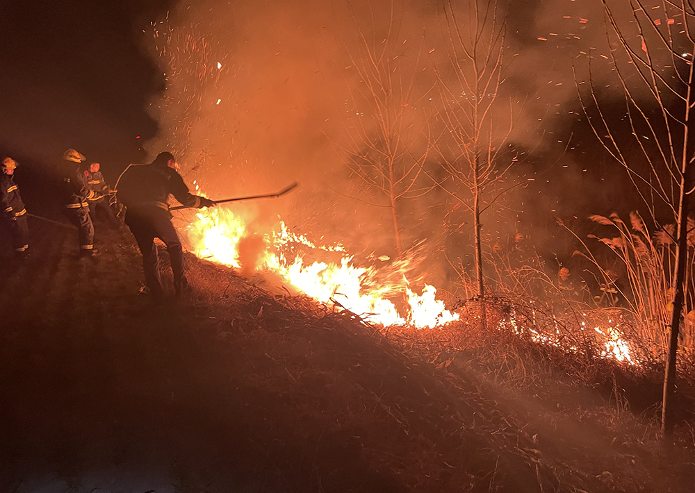 针对这一情况,指挥人员立即对着火区域进行划分,救援人员每人负责一片区域,使用铁锹、打火鞭等工具对着火物质进行扑救,在大家的共同努力下,经过50多分钟的紧张救援,火势终于被完全扑灭。