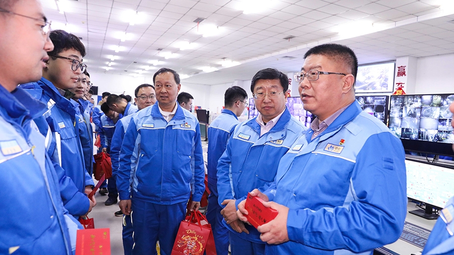 摘要:2月9日农历腊月三十除夕夜,万家团圆之际,党委书记、董事长王力刚带领公司管理团队,看望坚守在生产一线岗位的干部员工,向大家致以新春的诚挚问候和美好祝福!